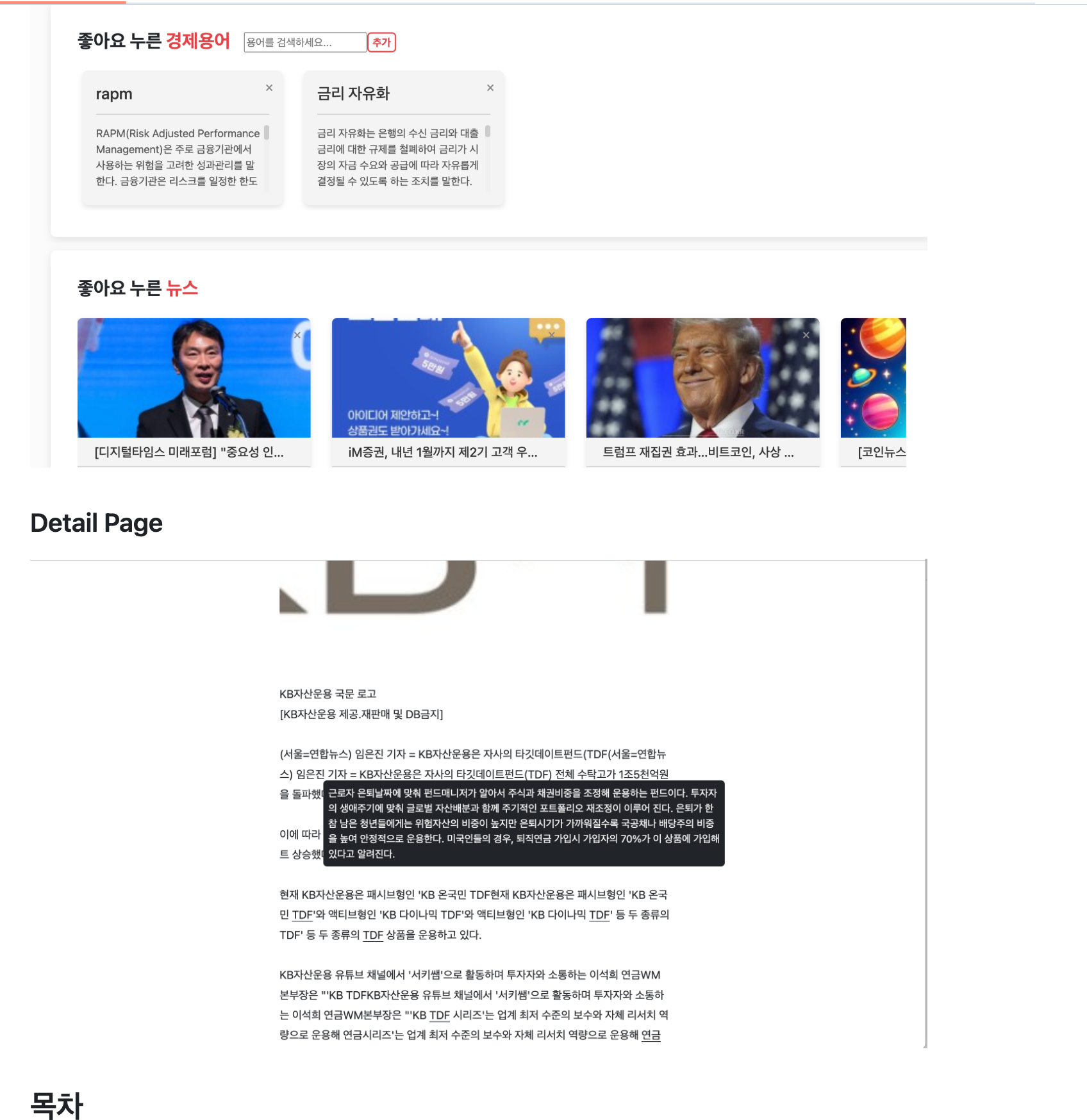 경제 뉴스를 볼때 경제 용어를 빠르고 쉽게 이해하기 위해서 이 프로젝트를 시작하였다.